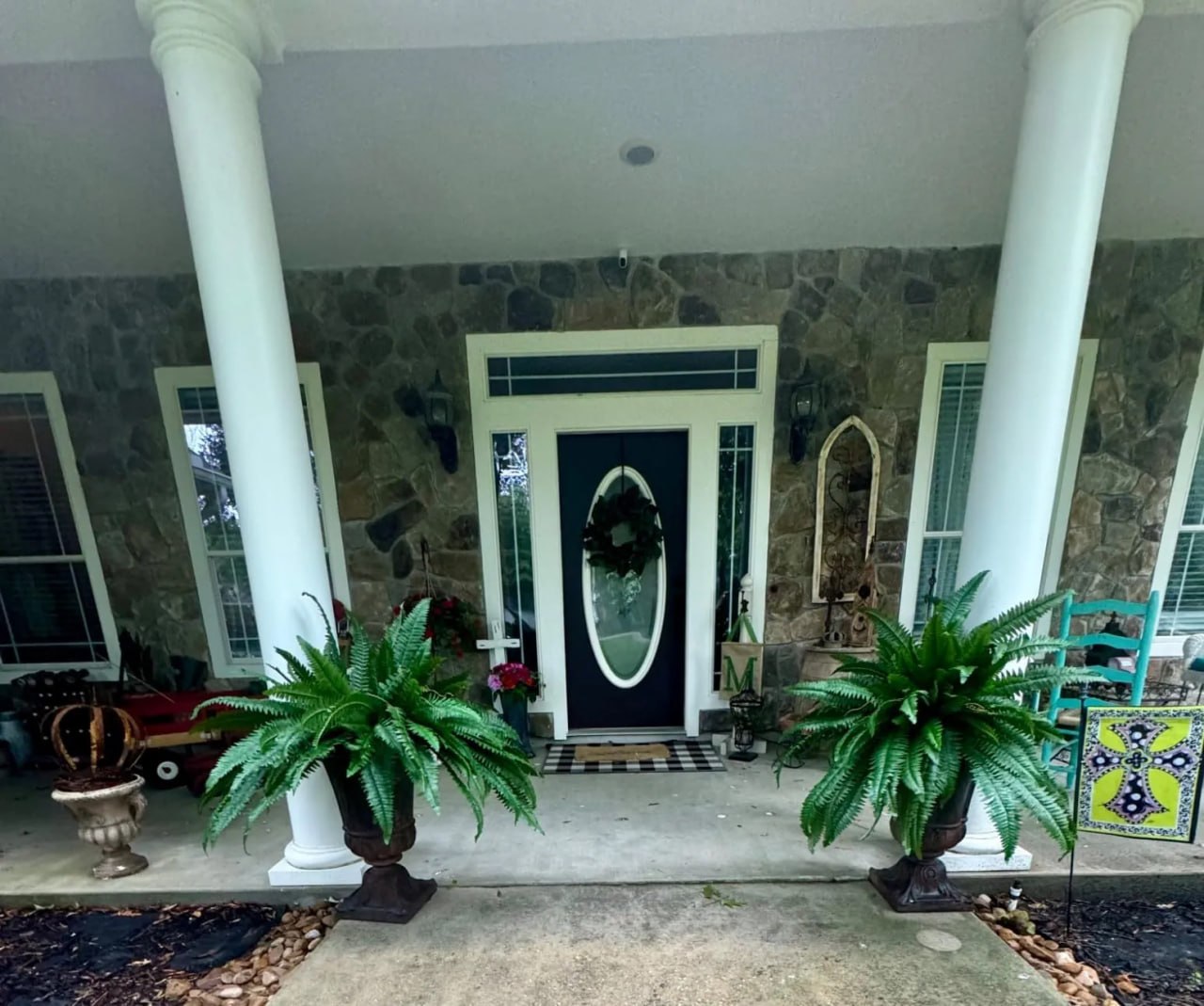 I was pleasantly surprised at how realistic they are! From the street, you absolutely can’t tell they’re fake lol! I used two plants in each urn. I had to shape them, much like an artificial Christmas tree, but it didn’t take long! We’ll see how they hold up!